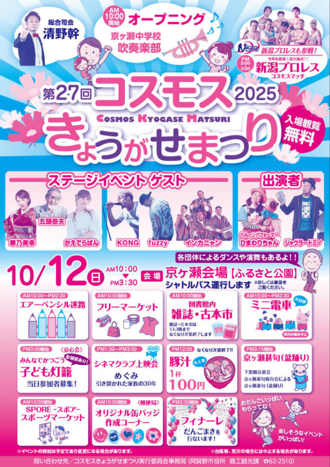 市の花コスモスのPRと阿賀野市京ヶ瀬地区の交流イベント!